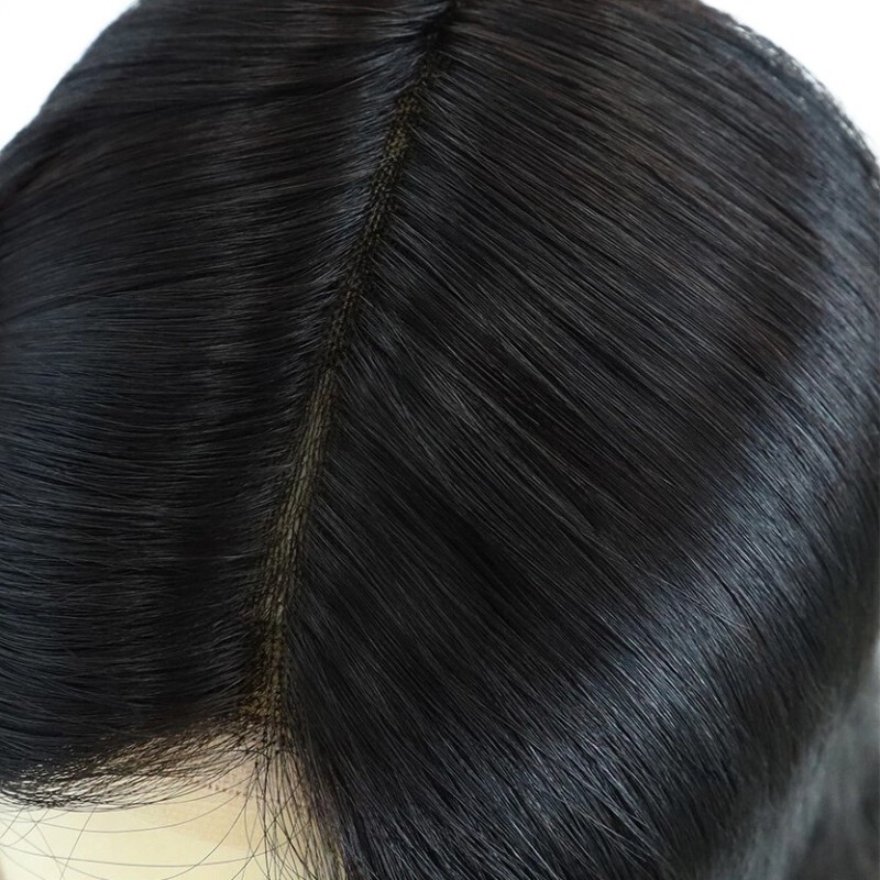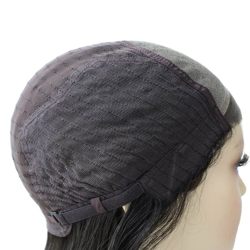 Tipo da Base Cabelo injetado fio a fio em renda francesa de monofilamento na frente e topo. Cabelo em trama nas laterais e nuca.